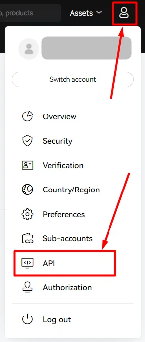 In OKX, open your account menu and go to API (API management).